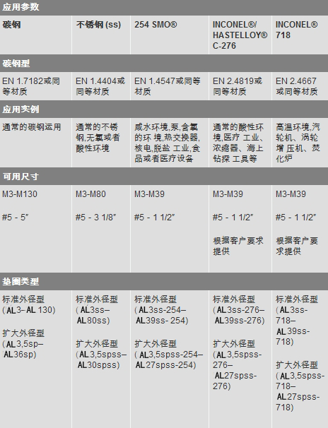 ANDI-LOCK墊圈的可選材料如下: